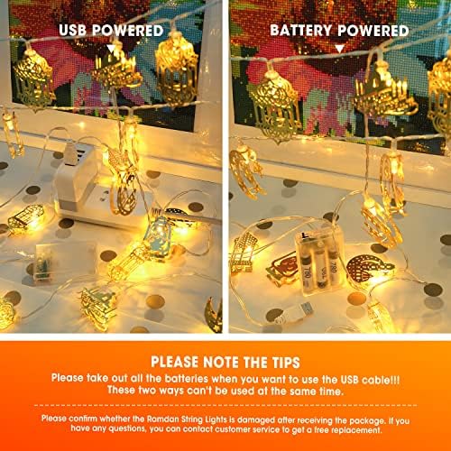 🕌Dual Power Sources – These Ramadan lights offer you the convenience of dual power sources, allowing you to choose between powering them with a USB plug or with 3 AA batteries (not included).