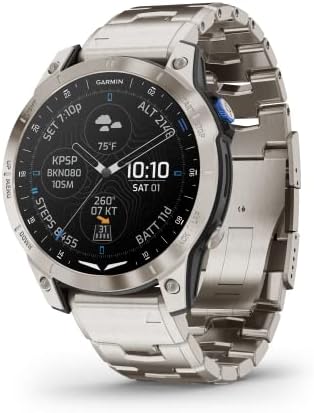 Accelerate the adventure with the D2™ Mach 1 GPS aviator smartwatch. With classic style and a modern AMOLED touchscreen display, this premium timepiece puts advanced tools for flying right at your fingertips. Check weather reports and radar, get automatic alerts for changing conditions, and navigate with the moving map, worldwide aeronautical database and HSI — plus more (when paired with your compatible smartphone). Pair with the Garmin Pilot™ smart-device app to transfer flight plans to the watch and log your flights automatically. Use the smartwatch’s health and wellness features to help ensure you’re ready for your next flight — and find new ways to move with its more than 30 built-in sports apps and animated workouts. And be ready for departure with up to 11 days of battery life.
