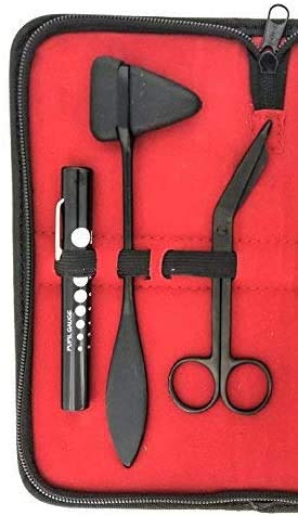 This Reflex Percussion Kit is a hand-picked specialized set made for both professionals and medical students. Surgical Online provides a reasonable price but high quality products for students who are starting to save for a starter pack to become a doctor or nurse. Ideal for Medical Student, EMT Student, Nurse Student, CNA Student, PA Student and RNA Students. This 6-piece Diagnostic Set is wrapped in a convenient and stylish zipper carry case, making it easy to keep your instruments organized and protected. The instruments will not tarnish on you, and are tested and inspected in the USA to give accurate, reliable results every time. Depend on this set to propel you to success in your nursing/medical career. Included In This Set: ‣ 2 – Tactical Black Diagnostic Tuning Forks C 128 & C 512 ‣ 1 – 5.5″ Tactical Black Steel Bandage Scissors ‣ 1 – Black Pupil Gauge Penlight – Clip On + LED ‣ 1 – Tactical Black Taylor Reflex Percussion Hammer ‣ 1 – Stylish Zipper Case w/ Organization Straps + Red Interior Material Type : Stainless Steel Assembled and Inspected in the USA Non-magnetic corrosion resistant aluminum alloy