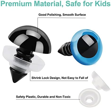 [SAFE FOR KIDS] Non-toxic plastic material for eyes and noses, safe for kids. The upgraded shrink lock design and elastic soft washers make the doll eyes very secure, preventing them from detaching and posing a choking hazard – giving parents peace of mind knowing their children can safely play with toys. Parents should accompany children while they are using these crochet safety eyes to make DIY crafts (not for Children under 3).
