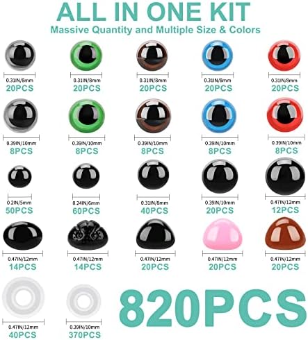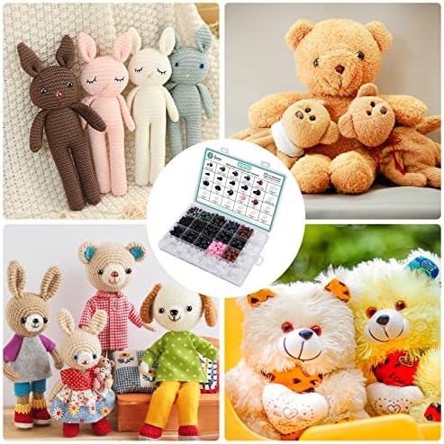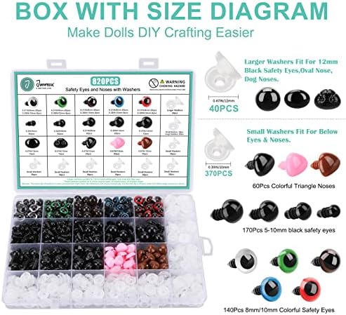 [EASY TO USE] Box with size diagram manual, these plastic eyes for crochet animals are extremely convenient to use, you can easily find and pick the right back to fix different size plush eyes and noses. Simply push the fabric through and fix the toy eyes & noses with the secure washer, and the backing will fit the eyes and noses properly. This crochet eyes kit is ideal for both beginners and experienced crafters.
