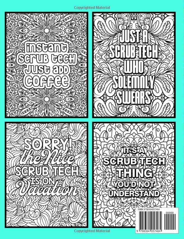 This coloring book is a collection of humorous and hilarious Scrub Tech sayings & quotes with nice designs, mandalas.. etc. It will help you to relax & relieve stress.