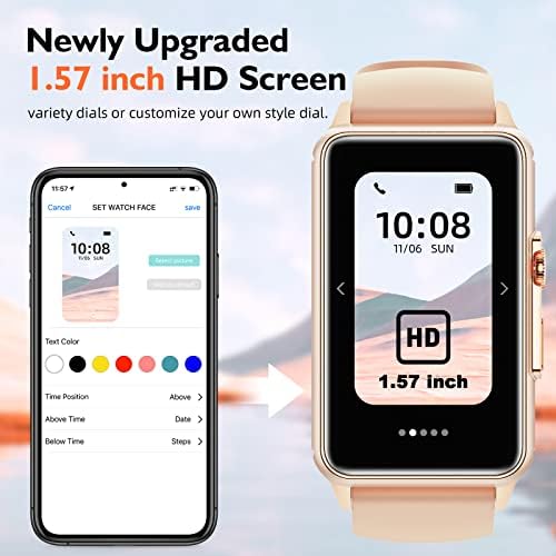 【1.57 inch Touch Screen & Customized Dial】A newly upgraded smart watch specially designed for Android iOS phones, equipped with an ultra-clear 1.57-inch full-touch HD color screen, which is clearly visible even in strong sunlight, making fitness watches more fashionable and durable for men and women. The “FitCloudPro” app provides a variety of cloud watch faces, allowing you to switch watch styles at any time. You can also use your favorite photos as watch faces to show your style.