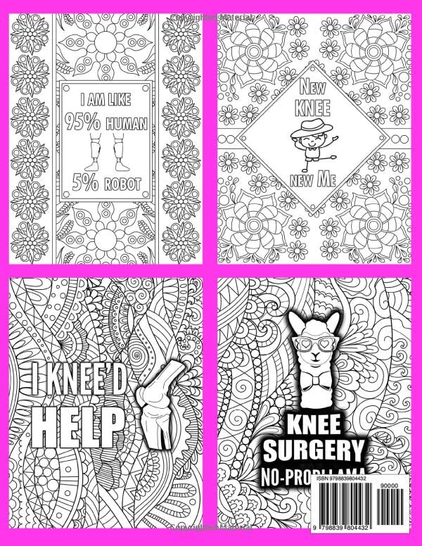 This coloring book is filled with funny Knee Surgery Related sayings surrounded by beautiful stress-relieving designs that will keep you entertained and relaxed throughout your recovery process. Going through a Knee Surgery can be stressful, but adding a little humor to the situation makes the whole process much less daunting. So enjoy mindfulness and relaxation with this brilliant anti-stress therapy.