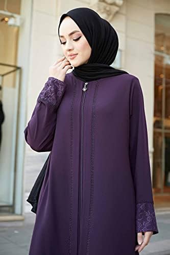 Istanbul Styles Women’s Abaya Lace Applique Long Sleeve Floor Length Zipper Floor Length Turkey Islamic Fashion