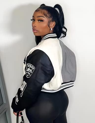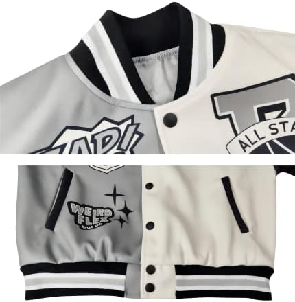 ♥ Features: Varsity jacket, button closure, long sleeves, stand-up collar, pattern on bottom hemline, side pockets, street style.