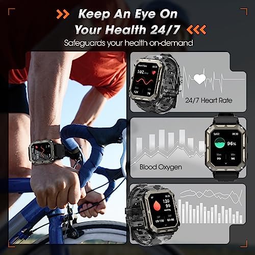 DESIGNED FOR OUTDOOR AND INDOOR SPORTS–The pedometer smart watch supports 120+ sports modes, it can track your calories, steps and distance, you can easily customize and change up your routine. The rugged men’s exercise smartwatch has got through IP69K rating test, with static waterproof to 100m, you can wear it for all day-to-day water sports and activities, such as swimming, diving, surfing