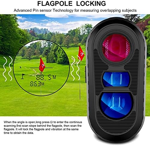 Lock the flagpole in golf-mode: it will generate-vibration feedback after sacnned the flagpoleand then display the measurement data on the display screen.