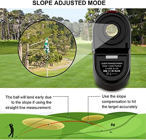 Golf-slope adjustment mode: When the swing distance is too far to measure the distance, the distance compensation mode can be used to measure the slope compensation distance quickly.