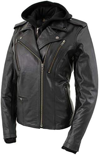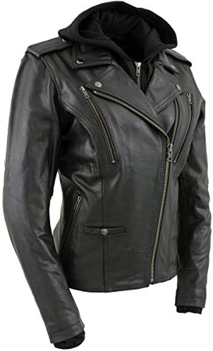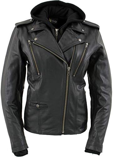 Xelement XS2516 Women’s Black ‘Madame’ Hooded and Vented Motorcycle Biker Leather Jacket