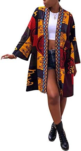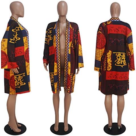Women’s Casual African Geometric Patterns Print Long Sleeve Open Front Long Blouse Loose Tops Outwear Jacket Coat Suitable for Summer, Beach, Swim, Club, Nightclub, Rock, Sport, Party, Cocktail, Special Occasion, and other activities.