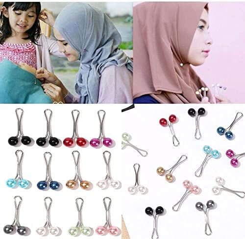 Htppzjr 12pcs Multicolor Headscarf Pearl Pins Clips U Shape Hijab Scarf Lady Muslim Scarf Shawl Clips Scarf Brooches Pin Jewelry Accessories(Black&White&Gold)