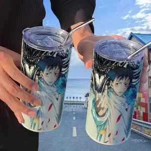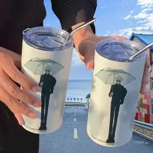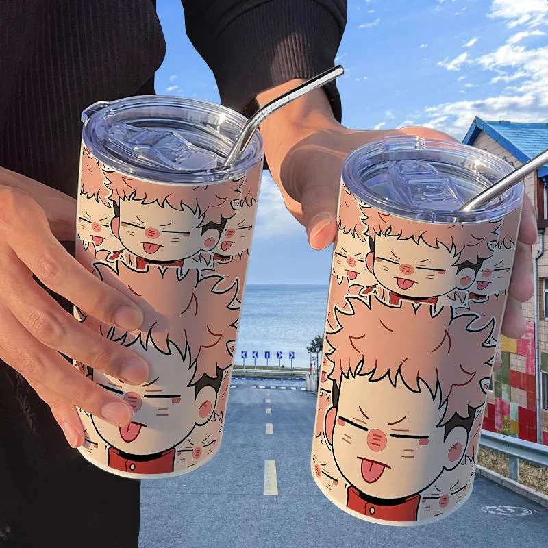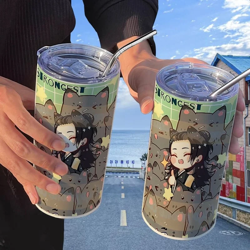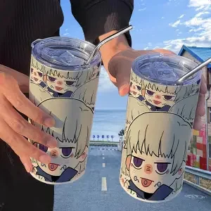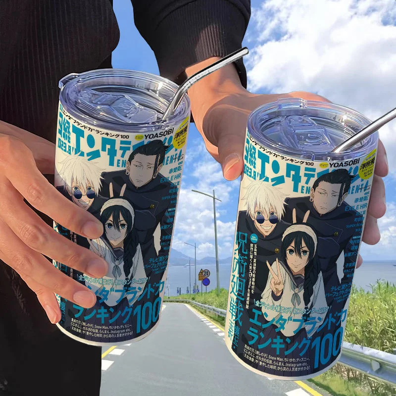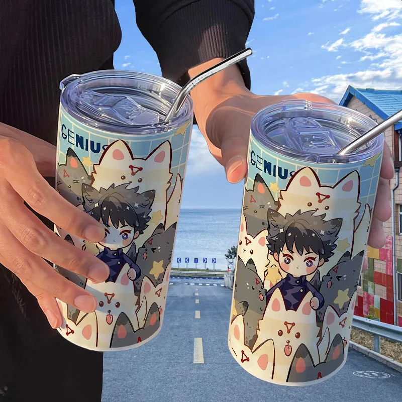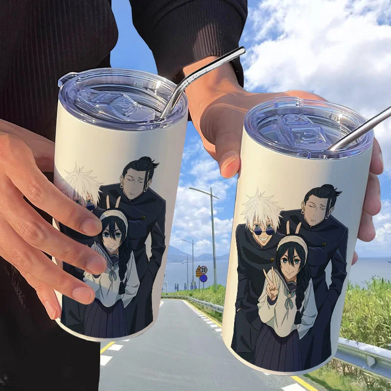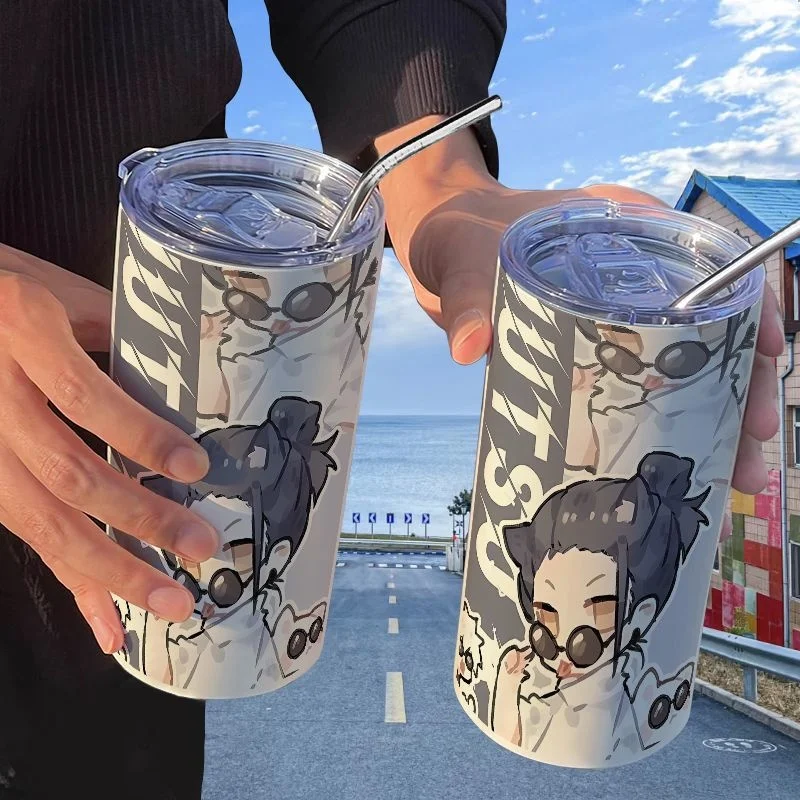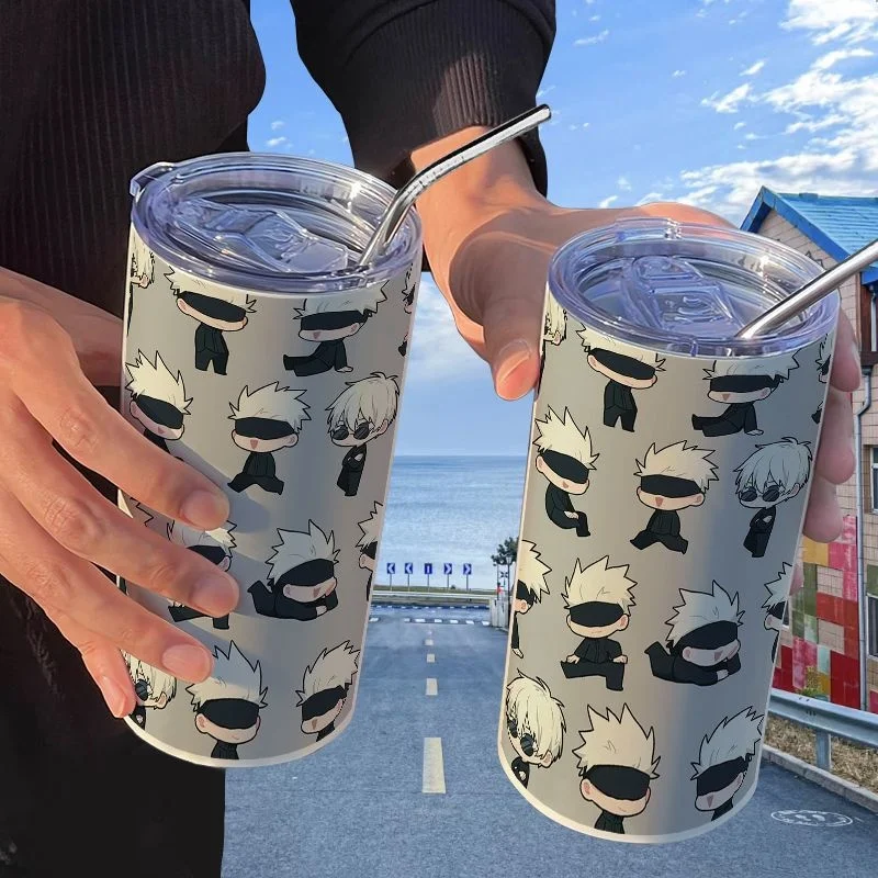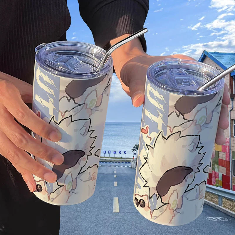 Shoppingdealer > World Cup 2022 > 420ML Jujutsu Kaisen Thermos Cup With Straw Cartoon Gojo Satoru Stainless Steel Insulation Cups Portable Outdoor Water Bottle