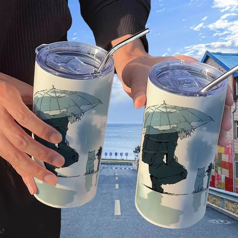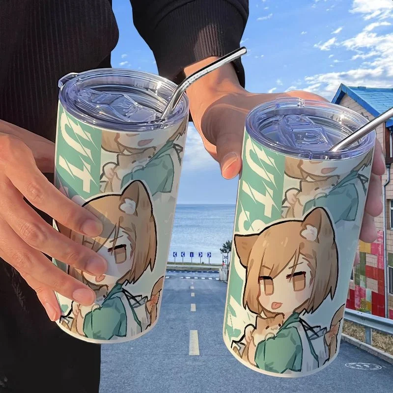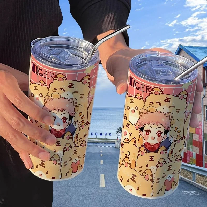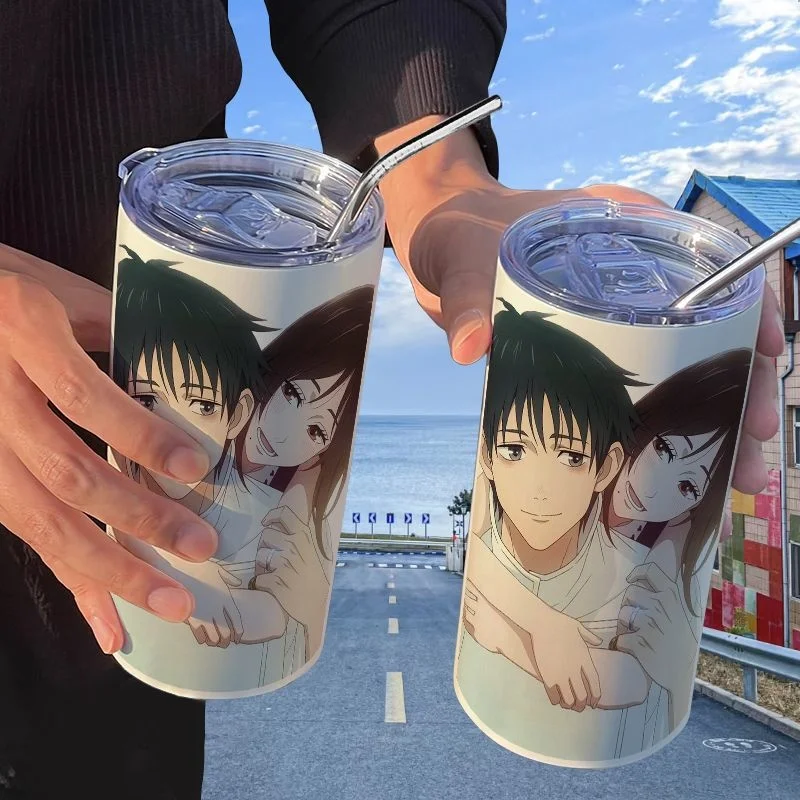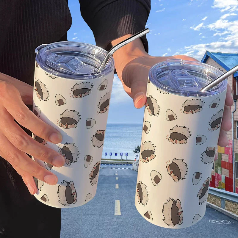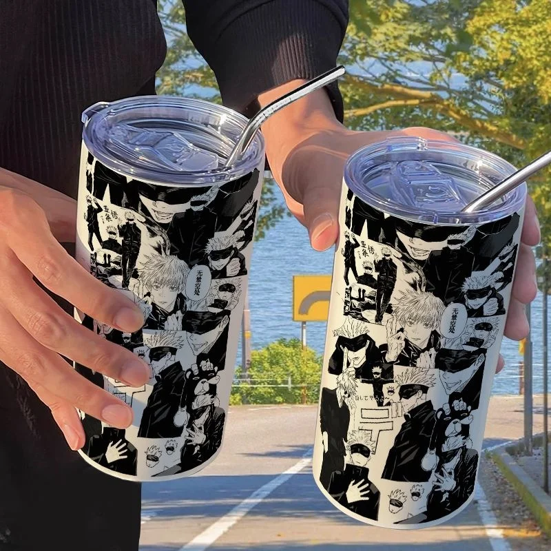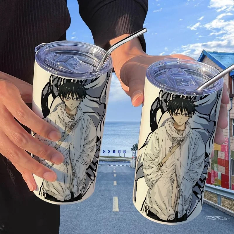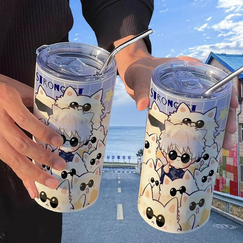 420ML Jujutsu Kaisen Thermos Cup With Straw Cartoon Gojo Satoru Stainless Steel Insulation Cups Portable Outdoor Water Bottle