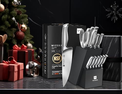 Warranty and Service: Our dishwasher safe knife sets for kitchen with block are backed by EU patents, ISO9001, BSCI, and FSC certifications. Enjoy the confidence of WIZEKA’s 80-year warranty and free replacements for your satisfaction.