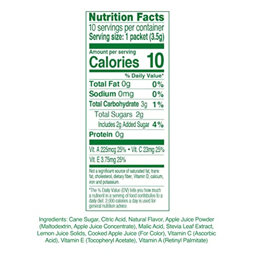 MADE FROM SIMPLE INGREDIENTS: True Lemon Kids Crisp Apple is made from simple, Non-GMO ingredients sweetened with stevia and a touch of sugar! You’ll feel good about giving these juice packets to your kids because they have NO artificial sweeteners, flavors, preservatives and have colors from natural sources like fruits and vegetables. They are also gluten and sodium free.